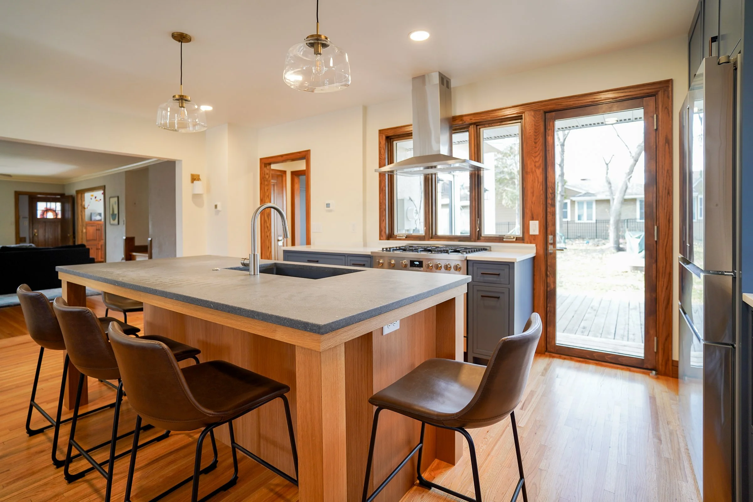 This home presented a real opportunity to rethink the ergonomics of the kitchen for a growing family. Architect Andrew Edwins and Designer Claire Bossert of PKA Architecture took a new look at an existing addition, expanding the kitchen and creating a spacious pantry and connected work/craft space, allowing the whole family to be in the kitchen working and playing together harmoniously. Along the way, we were able to diagnose some existing weather-proofing and mechanical flaws and address them during the process, resulting in a major improvement to the home’s durability and comfort above and beyond the remodel scope.